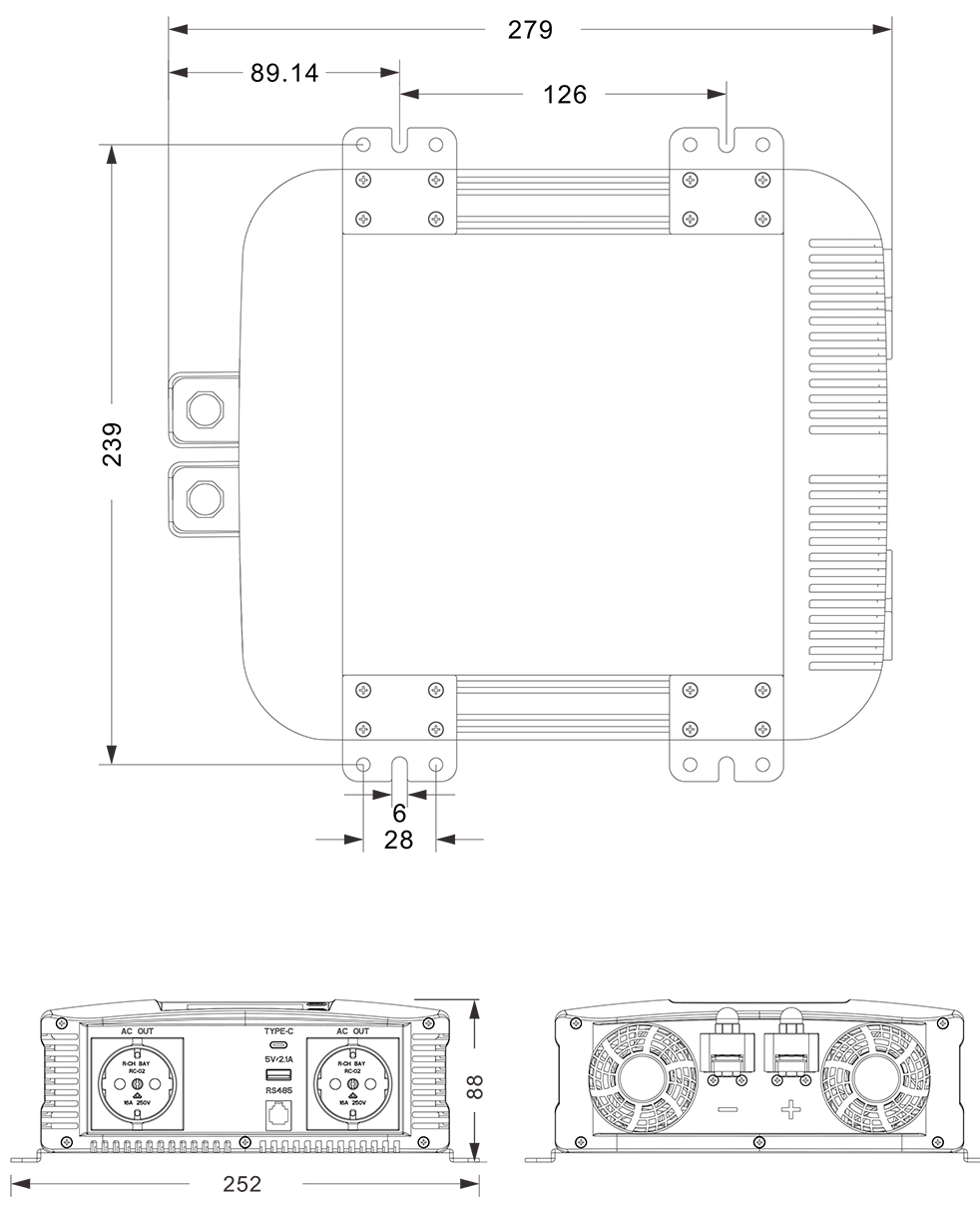 Mechanische Zeichnungen: (279 x 252 x 88 mm)