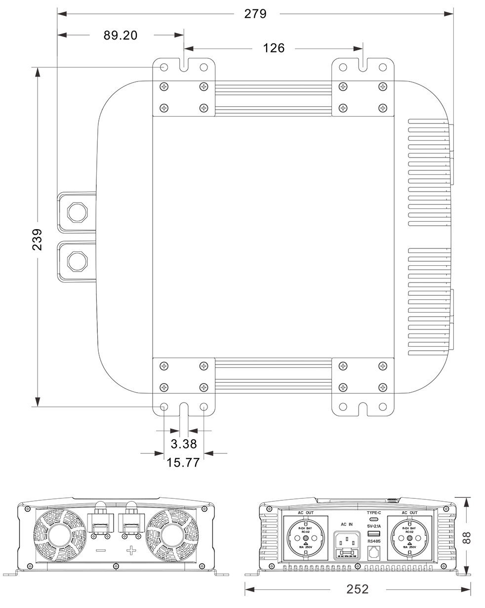 Mechanische Zeichnungen: (279 x 252 x 88 mm mm)