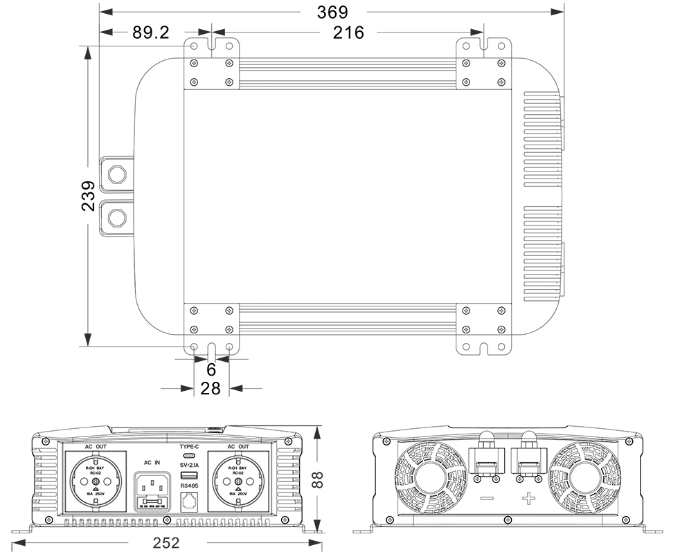 Mechanische Zeichnungen: (369 x 252 x 88 mm)