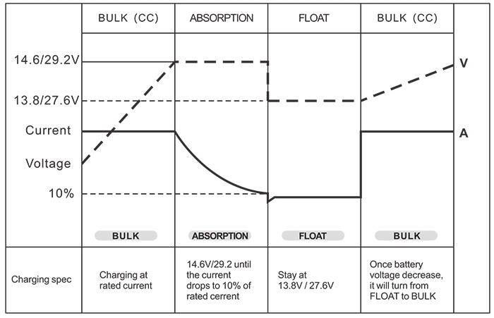 Batteriekontrolle (3-Stufen-Batterieladegeräte) Masse/Absorption/Float