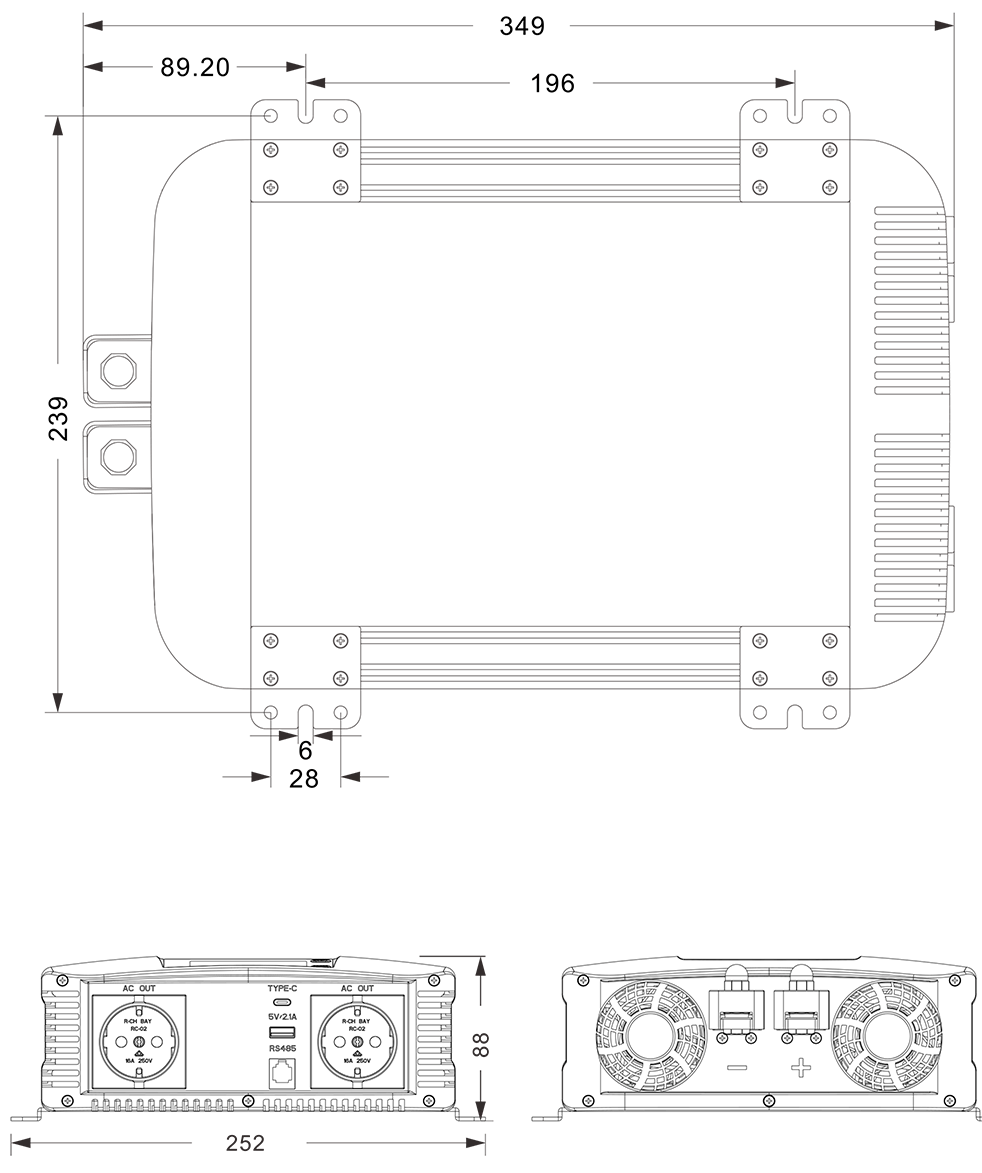 Mechanische Zeichnungen: (349 x 252 x 88 mm)