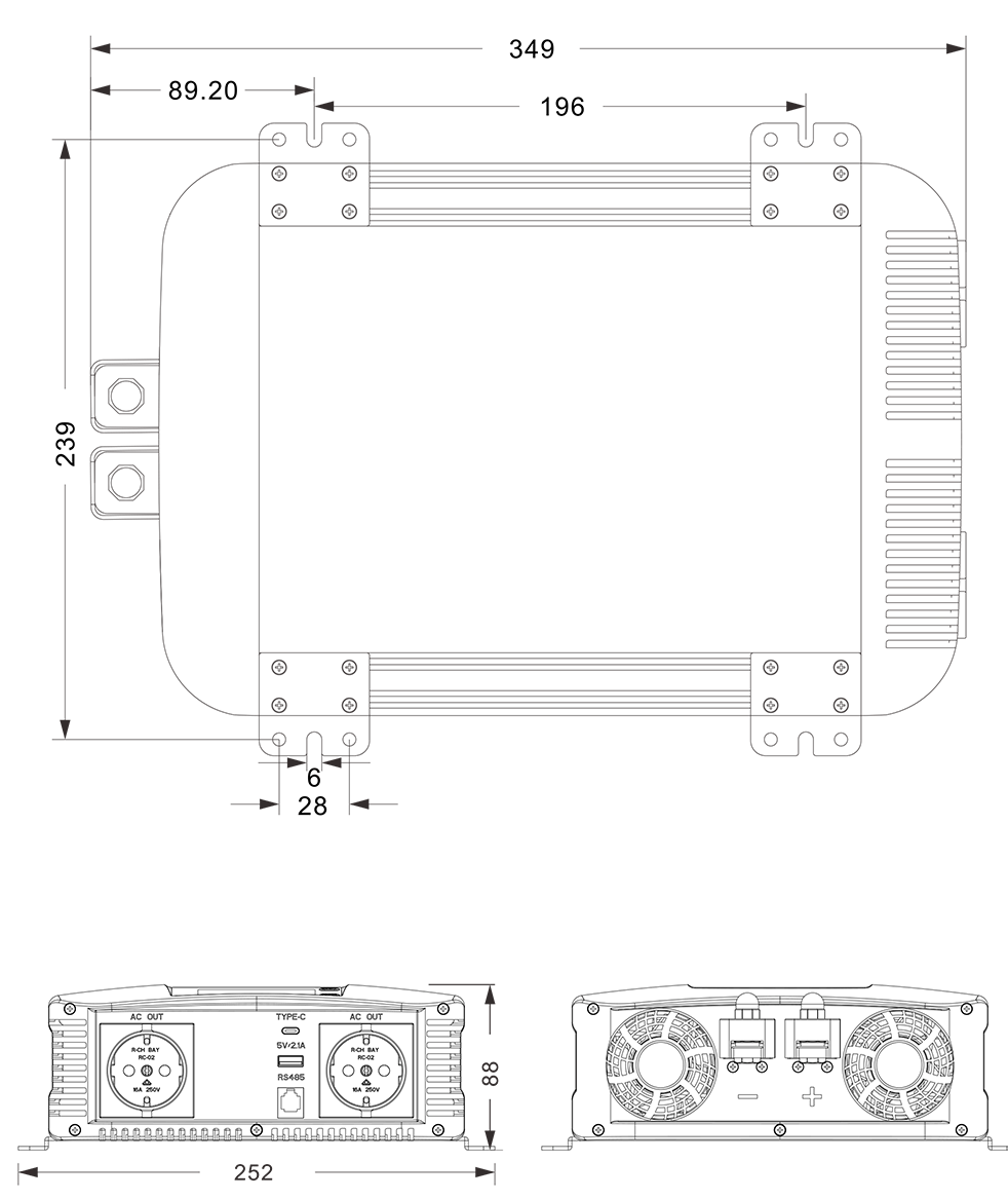 Mechanische Zeichnungen: (349 x 252 x 88 mm)