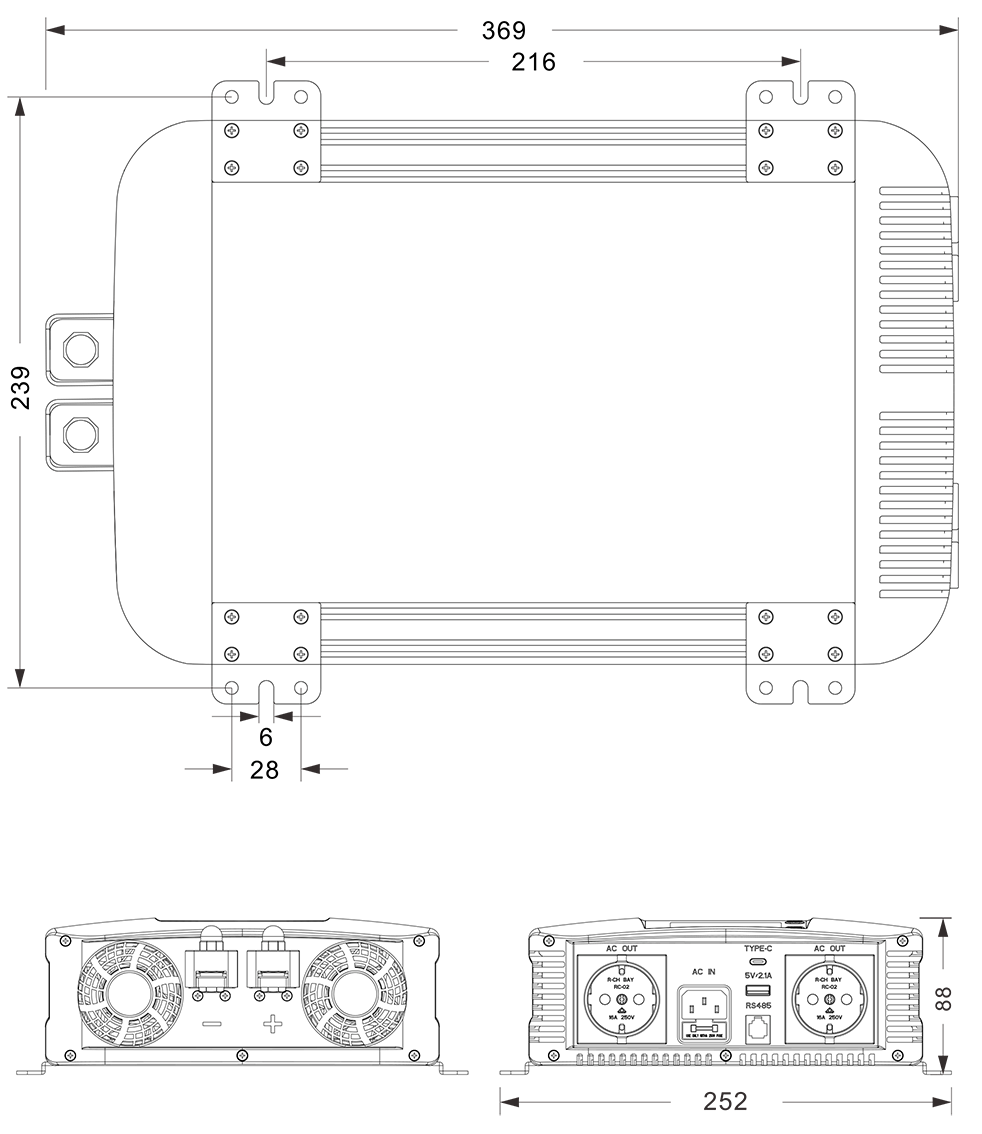 Mechanische Zeichnungen: (369 x 252 x 88 mm mm)