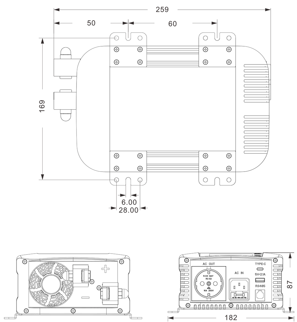 Mechanische Zeichnungen: (259 x 182 x 87 mm)