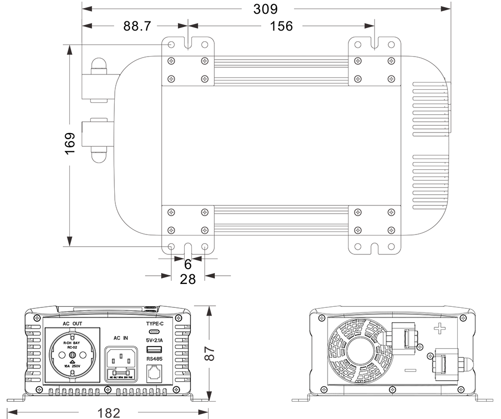 Mechanische Zeichnungen: (309 x 182 x 87 mm)