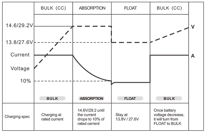 Batteriekontrolle (3-Stufen-Batterieladegeräte) Masse/Absorption/Float